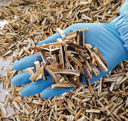 収穫した生の椎茸をスライスしてから乾燥するのが一般的だが、「オーサワの九州産乾しいたけ(スライス)」は、乾椎茸を一度高圧で蒸し、やわらかい状態に戻してからスライスする。水分ではなく蒸気を使うのは、旨みが抜けないようにするため。スライス後、遠赤外線で高温乾燥。高温乾燥により旨み成分のグアニル酸が増加するといわれており、より風味豊かな仕上がりに。