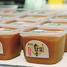 1932年創業。「山万の伝統と独自性で、ともに感動を創りだす味噌屋を目指し、豊かで幸せな文化を育む」を理念に、真心を込めたこだわりの味噌を生産している。信州産の良質な米や大豆、天日塩を使い、昔ながらの製法で白、赤、発芽玄米、緑大豆、黒豆などさまざまな種類の信州味噌を商品展開している。